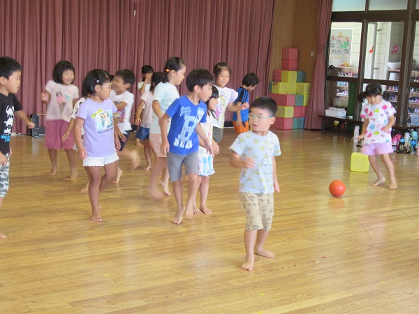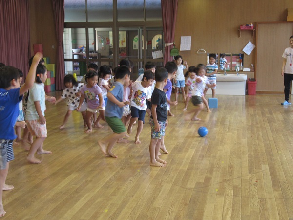踊りの練習後は、みんなが大好きな転がしドッチボールをしました。
