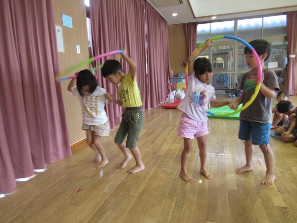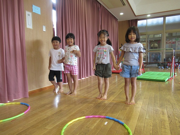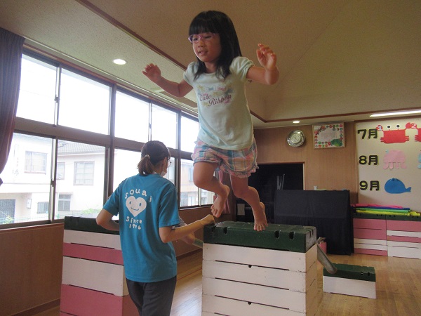 前回りや逆上がり、足抜き回り、おさるのポーズなど一人ひとりが出来ることに挑戦します。