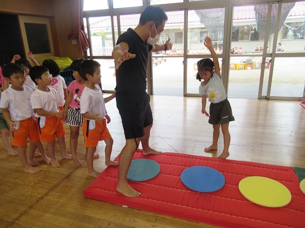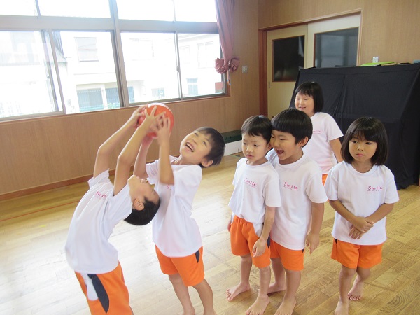 上や下から、ボールを次のお友だちに回していきました。