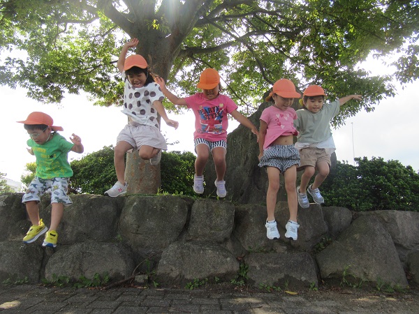 市民会館では、岩場から繰り返しジャンプをして遊びました!!