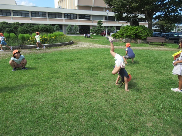 芝生の上では、側転の練習やお相撲を思いっきり楽しみましたよ。