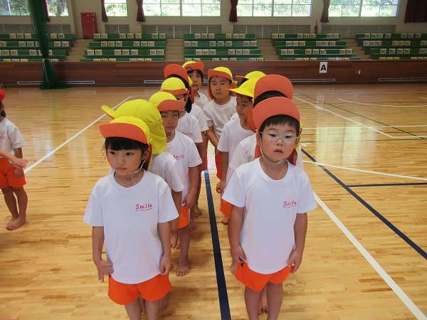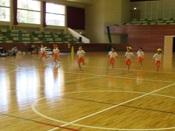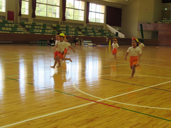 かけっこでは、広い体育館を思い切り駆け抜けました■
