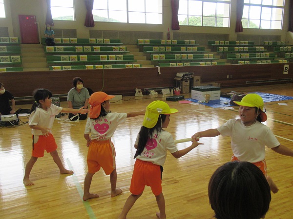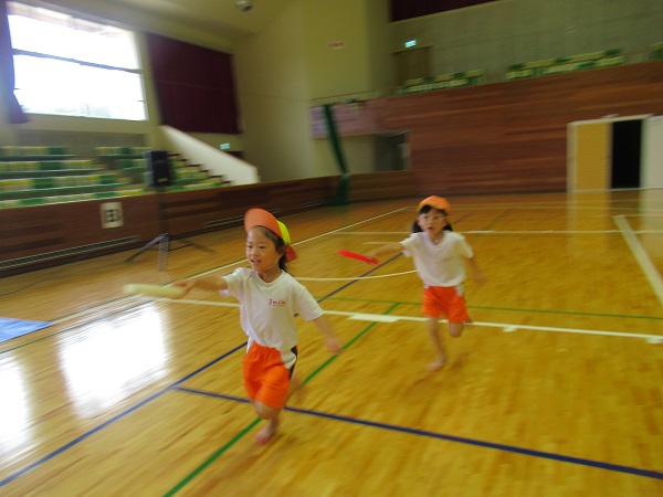 全速力で走り、次のお友だちへバトンパス!