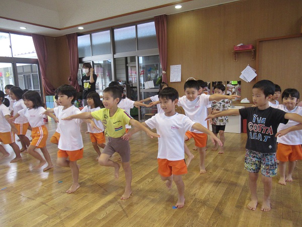 ウォーミングアップでは、片足立ちやおしり歩きに挑戦しましたよ。