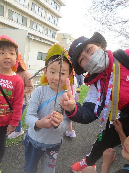 拾った桜の枝が「1」の形になってる!!