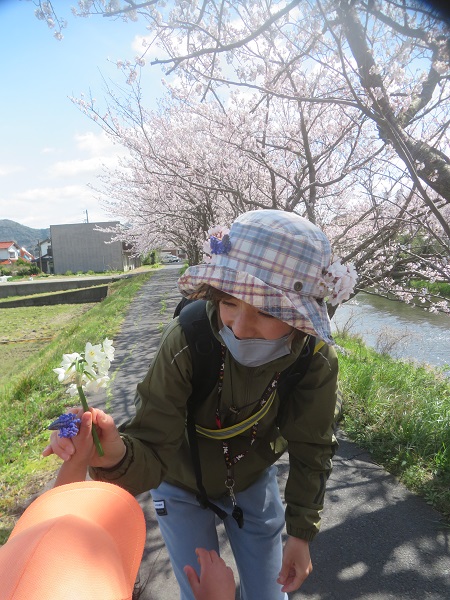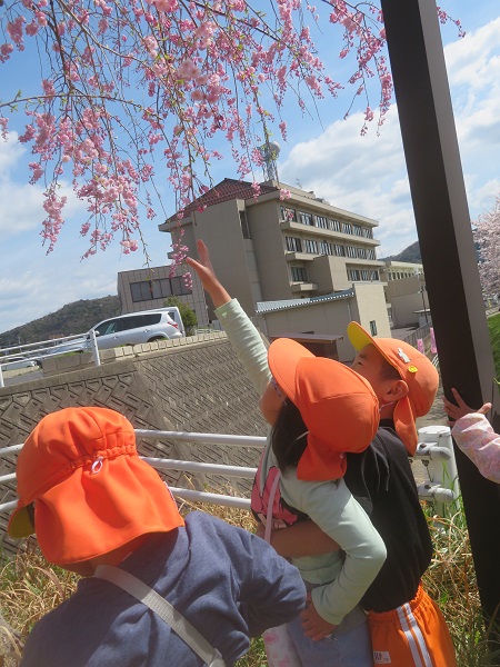 枝垂桜も綺麗に咲いていましたよ♡抱っこしたら手が届くかな??