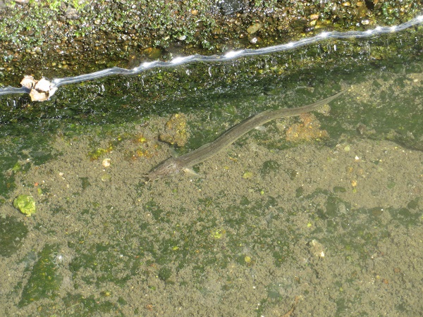 田んぼ脇の用水路では、何と小さなドジョウを発見!!大興奮!!