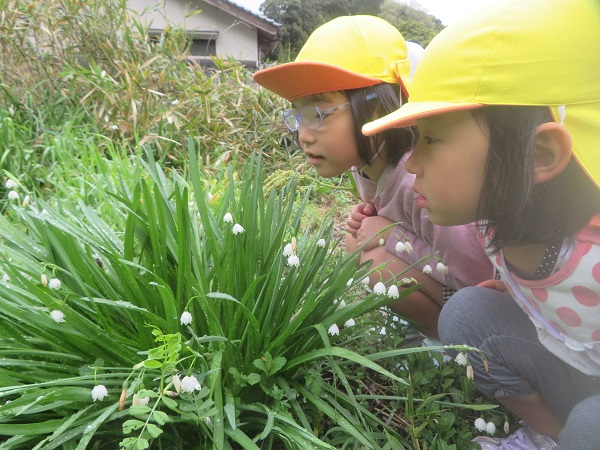 スズランの葉っぱで雨粒が光ってキラキラしてるね✨