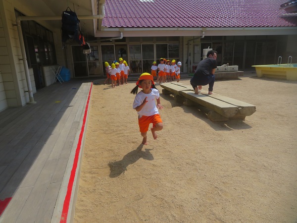 次はもっと広ーい園庭で走ってみます☆