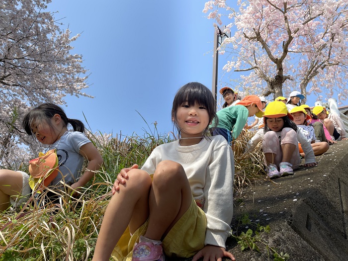 今度は自分たちで花びらを集めて、桜吹雪を降らせていましたよ~♪
