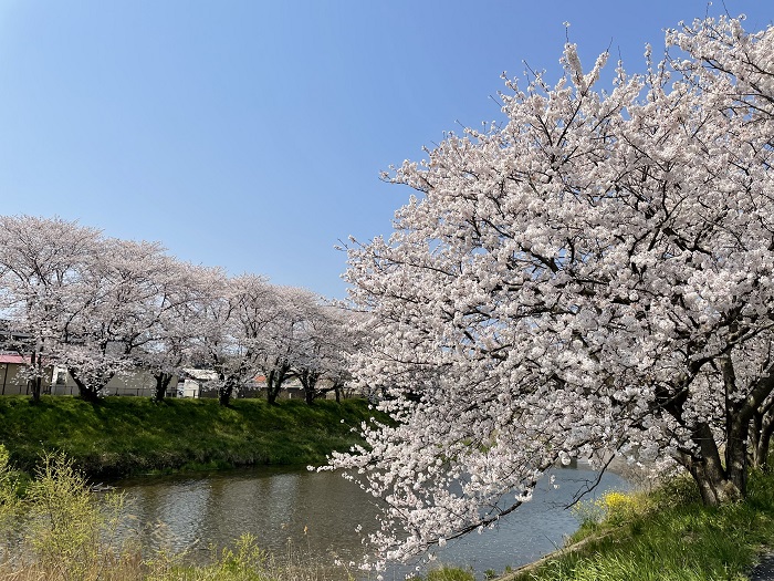 まだきれいに咲き誇る、川土手の桜の木の下を歩きました☆