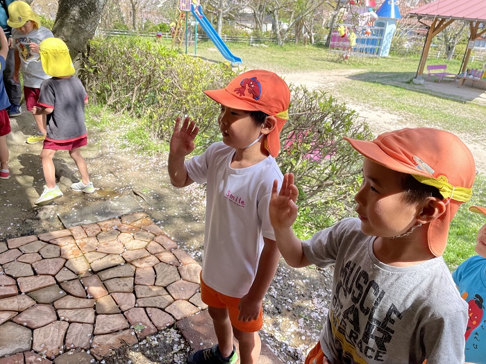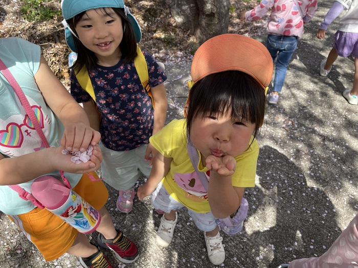 『桜雪だぁ~!!」と、両手を広げて、桜吹雪を体で感じていましたよ♪