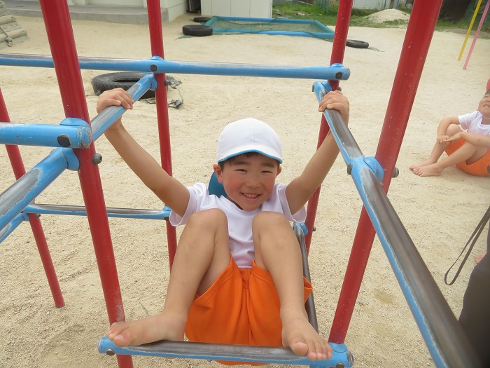 ただ登るだけではありません!!足が地面に着かない様に、くぐり抜けて登ります・・・