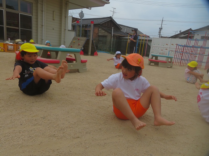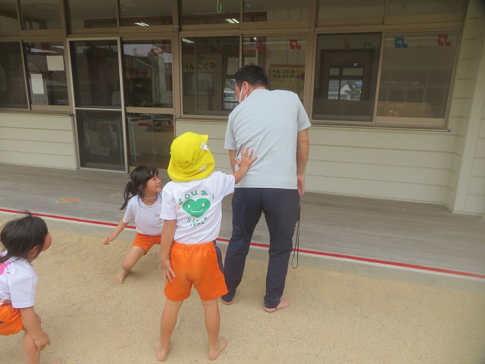 「だるまさんがころんだ!!」で、地面にふさったり・・・