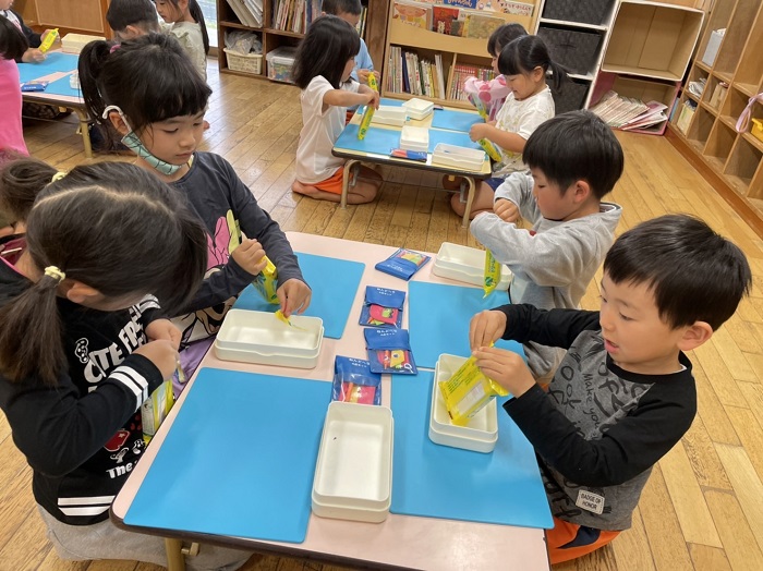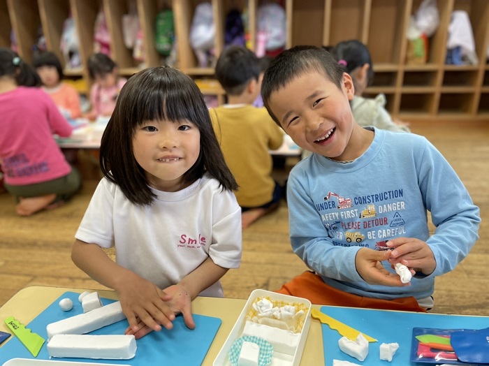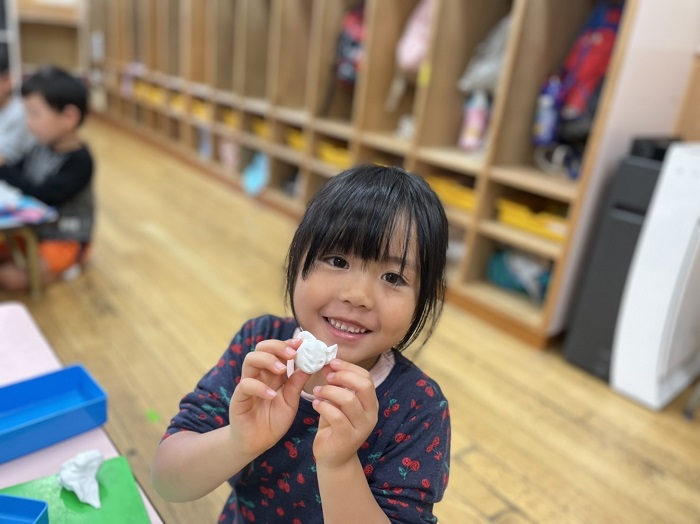 自分の好きなおかずを思い浮かべながら、粘土をこねこねしていましたよ~♪