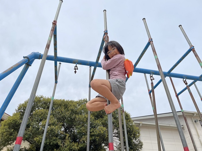 腕の力が付いて、ぶら下がったり、またがったり・・・