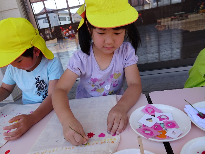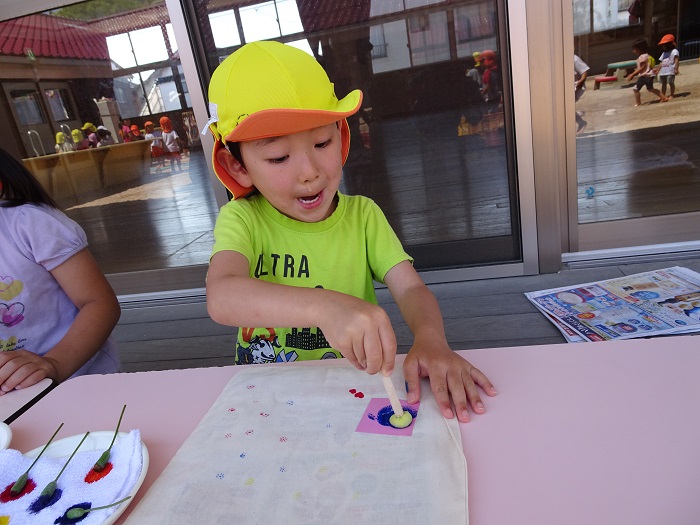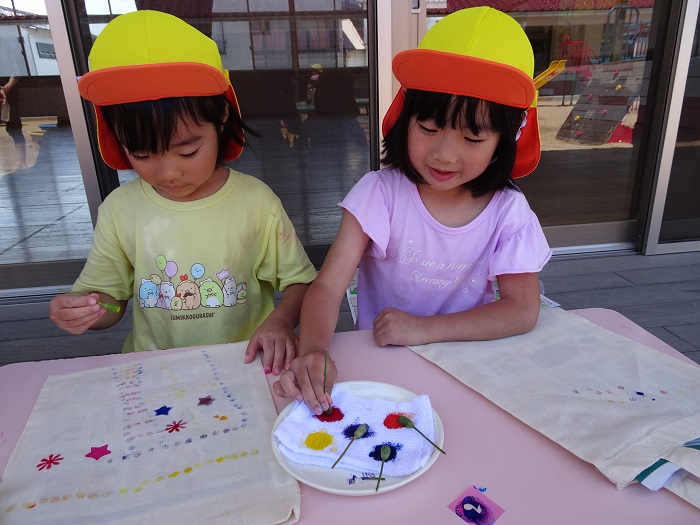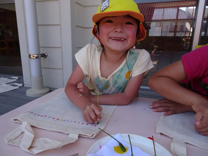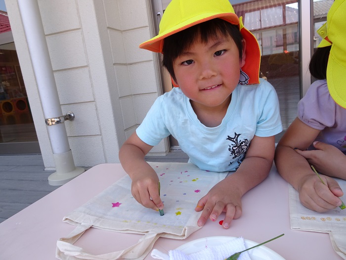 色落ちしない布用の絵の具を使ってバッグにスタンプ☆