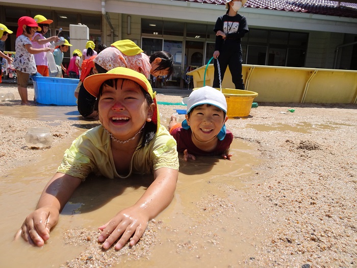 太陽が照り付け、夏のような暑さ☀水遊びも楽しみました!!