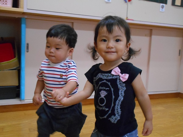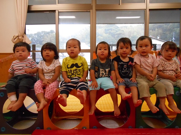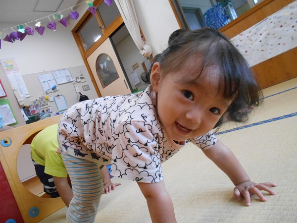 2017年10月03日 あー!楽しい♪雨降り☂の今日はお部屋で遊びましたよ♪ゲームボックスをお部屋に並べると・・・よいしょっ!と上に登ってみたり・・・下をトンネルみたいにくぐってみたり・・・あ~らよっ!とポーズ✨マットの上がふかふかで気持ち良くって寝転ぶと、トントンして寝かしつけ???仲良く手を繋いで歩いたり・・・■最後にはみんなで手を繋いで、大きな輪になりました■いっぱい動いて、いっぱい遊んで楽しかったね■