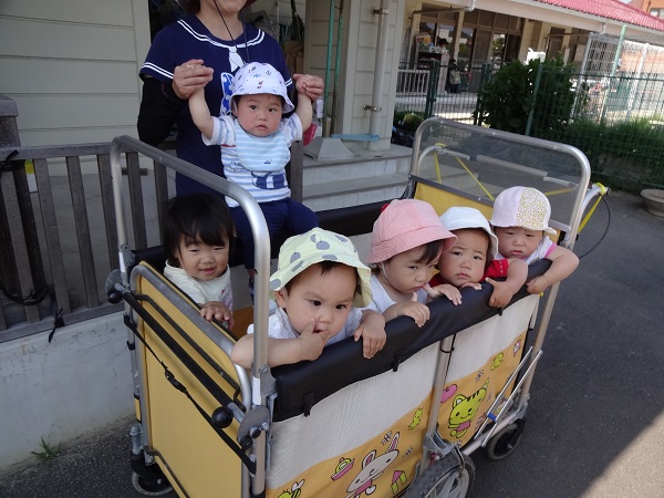 大型バスではないけれど、散歩車に乗って「出発進行!」