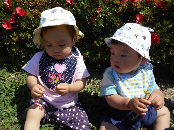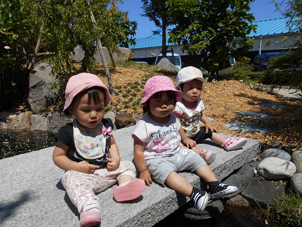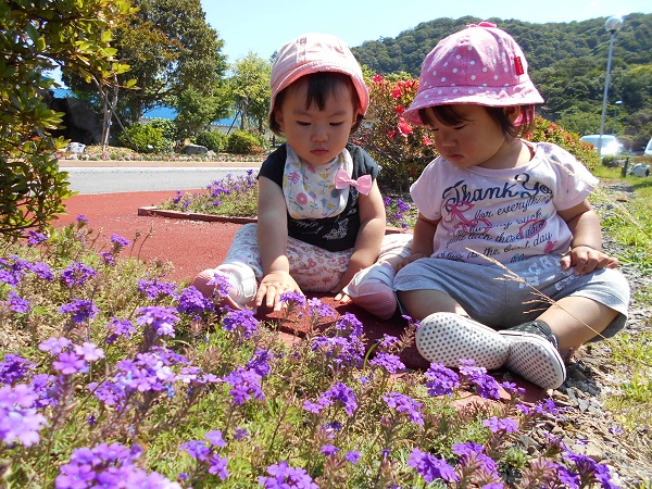 2017年06月13日 フラワー☆フラワー梅雨の晴れ間で涼しい今日は村田製作所に遊びに行きました。たくさんのきれいな花がいっぱい咲いていましたよ♪紫色のちっちゃなお花♪かわいいね♥何を占ってみようかな~??ちょっと南国気分??小さい川があったよ!大きな水車にびっくりのうさぎ組さん!大きな鯉がお口をパクパクさせて寄ってきました♪のんびりとゆっくりと散策できて楽しかったね■