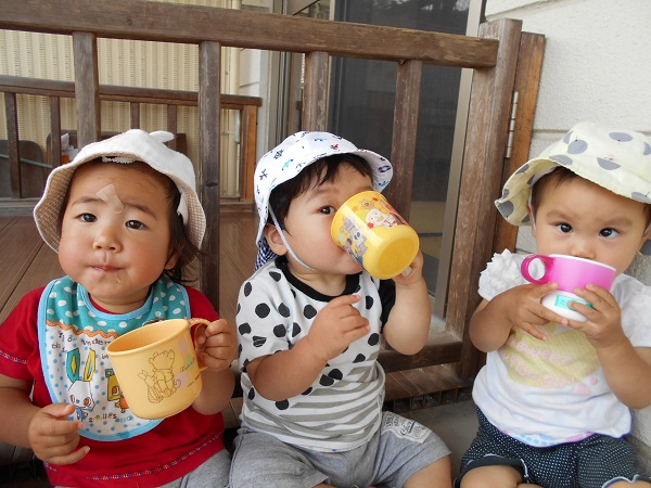 2017年06月27日 魚屋さんへ行こう!今日は、駅通りのマニワ鮮魚さんの開店日!お魚を見に、お散歩に行ってきましたよ■「お魚、おっきいね~!」と目が釘付け■帰ってからは、お茶休憩♪またお魚を見に行こうね■