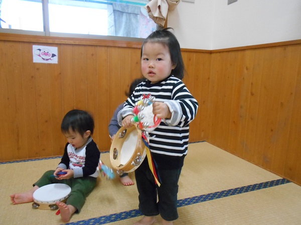 タンバリンや鈴、カスタネットで音楽遊びをしました♬