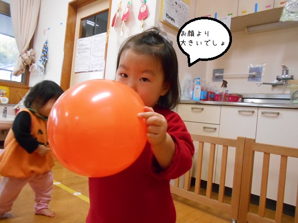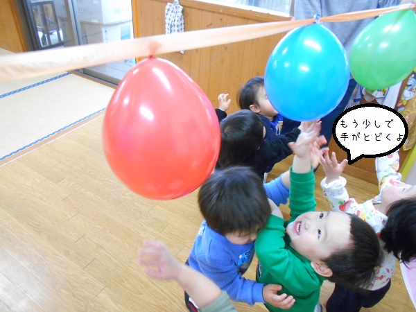 インフルエンザが流行っている中、みんなの元気な笑顔を見ることができました。今日は子ども達の大好きな風船で遊びましたよ。