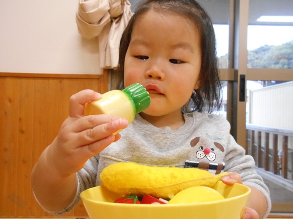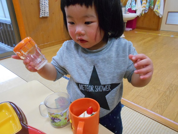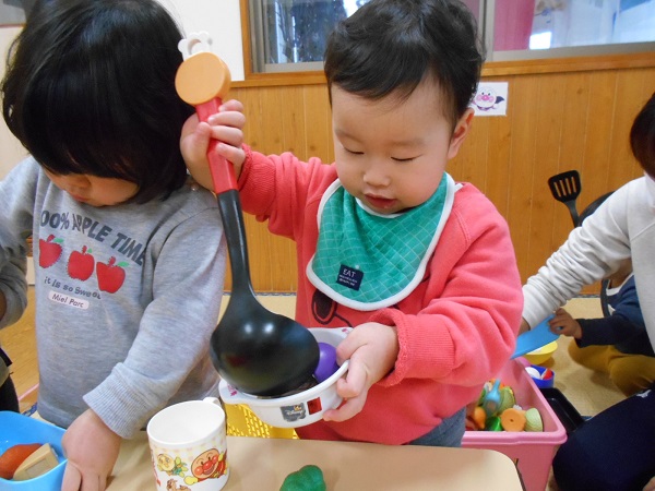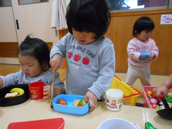 順番を待っているお友だちはおままごととブロックに夢中です♬