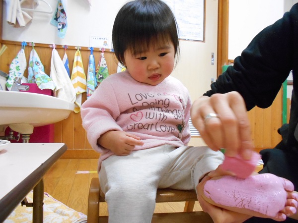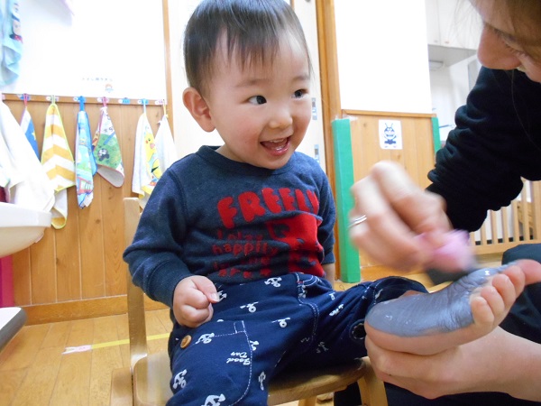 うさぎ組さんの小さな足形が、どんなプレゼントに変身するのでしょうか??