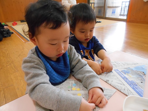 シールを貼るのはもう慣れっこのうさぎ組さん☆