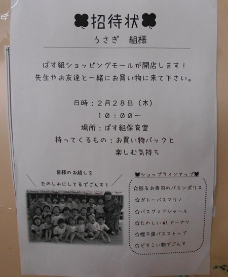 先日、ばす組さんから「ばす組ショッピングモールへ来てください!」と招待状が届きました♪