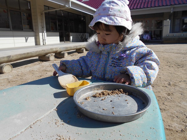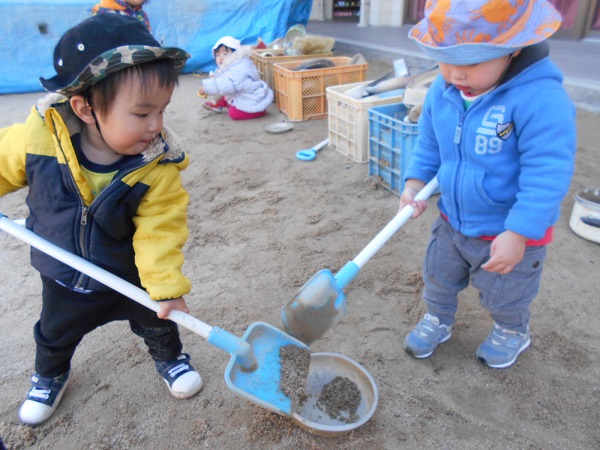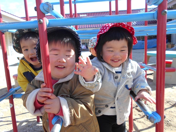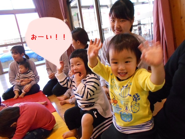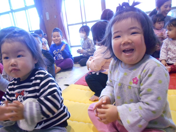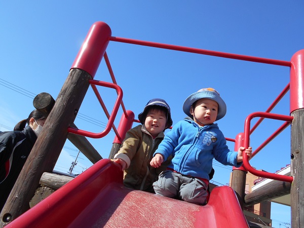 今日は春のような暖かさで青空がとってもキレイ!!誕生会の後は園庭でしっかり遊びました!