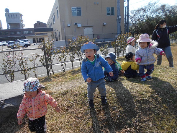 警察署横の広場までお散歩に行きました♪