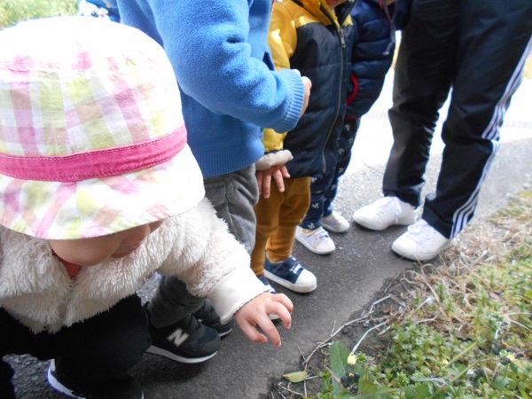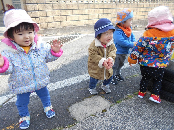 散歩にも慣れてきて、笑顔でお友だちと手をつないで歩けるほど余裕が出てきました。道中で出会う地域の方に「おはよー」と挨拶ができる素敵なうさぎ組さんです。