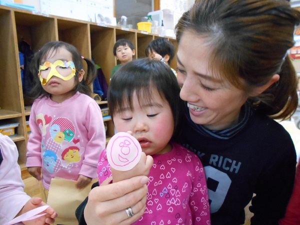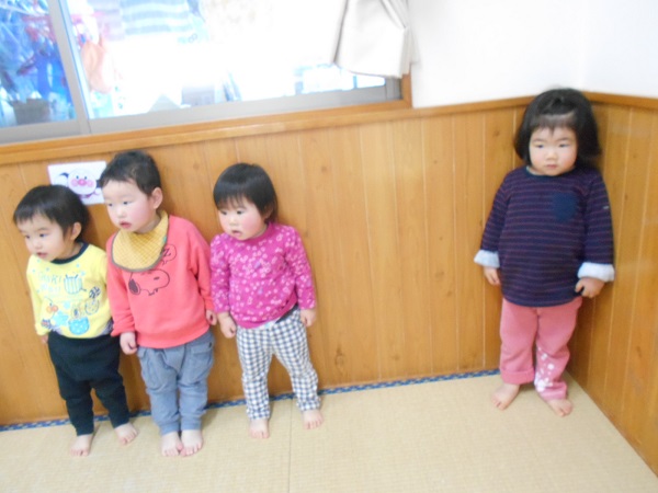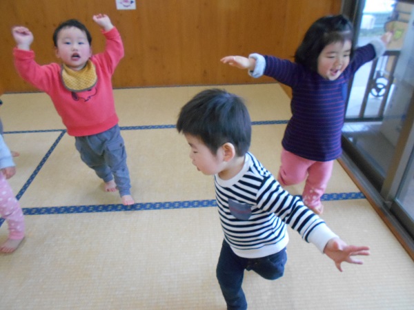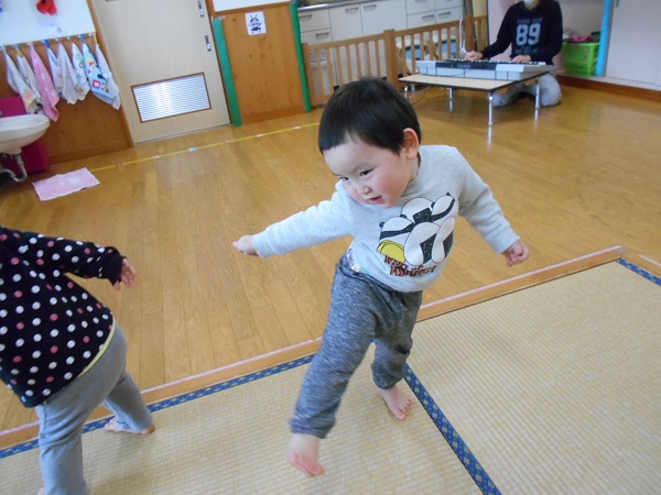 一つひとつの動きが終わり、「チャン、チャン」の音で壁さんペッタンも上手にできました。