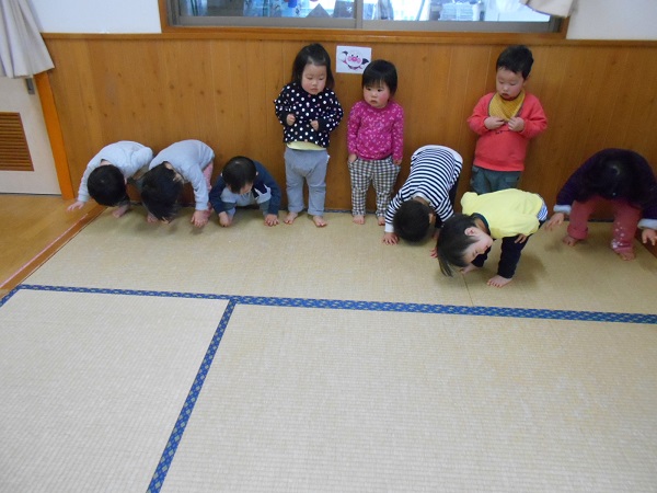 最後は「ありがとうございました」のお辞儀をしてリズムを終えました。