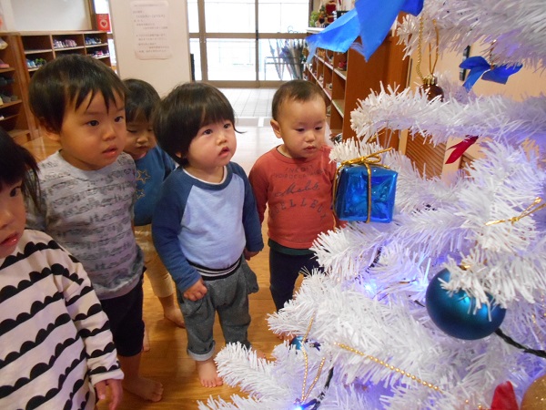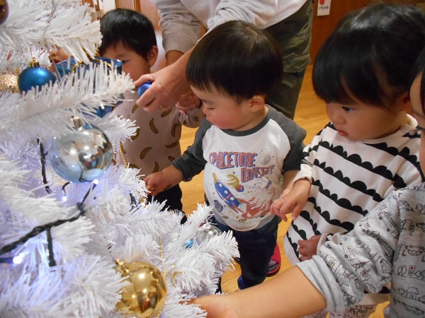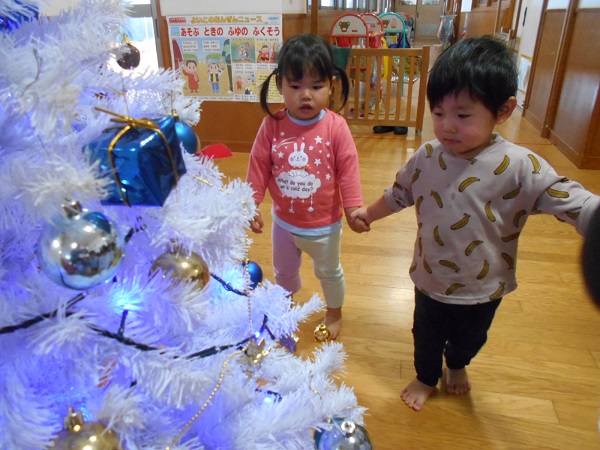 製作を始める前にみんなで相愛保育園の素敵なクリスマスツリーを見に行きました■