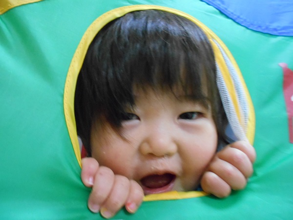 ボールハウスの中から「いないいないばあ♡」