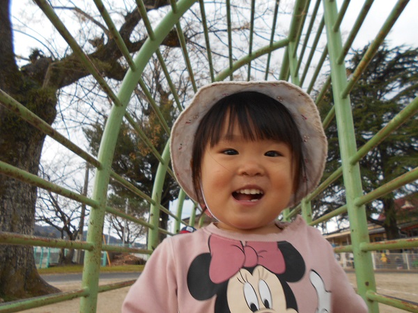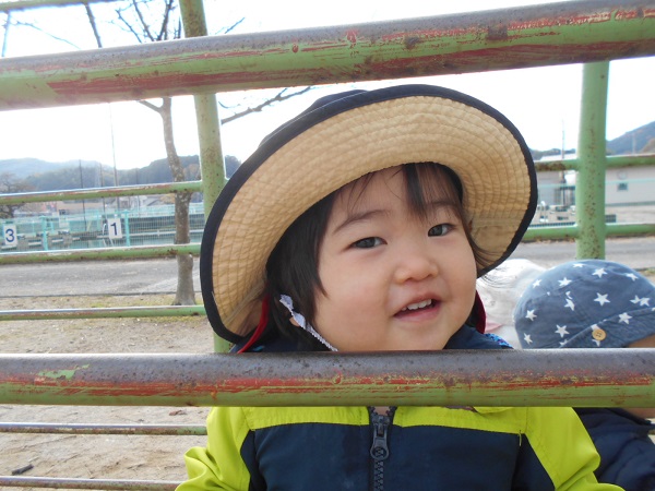 肋木の間からかわいい顔を出して「ばあ♡」