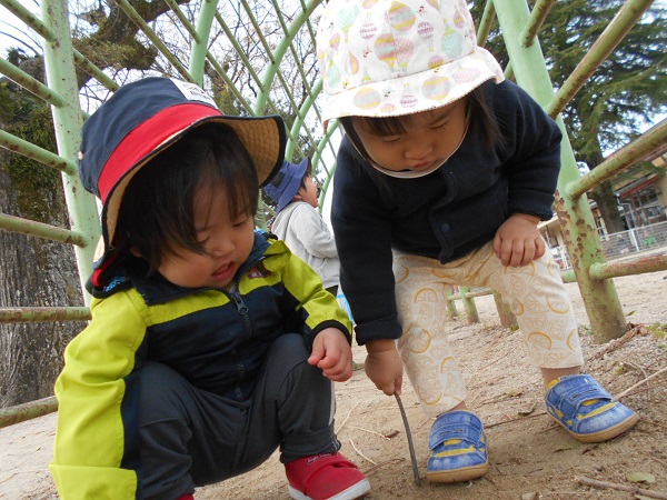 「ジロジロ~♪」といいながら、枝でお絵描きをしたりして楽しんでいましたよ✨