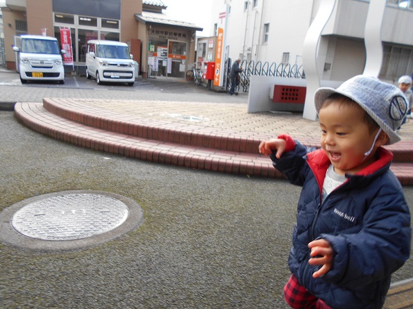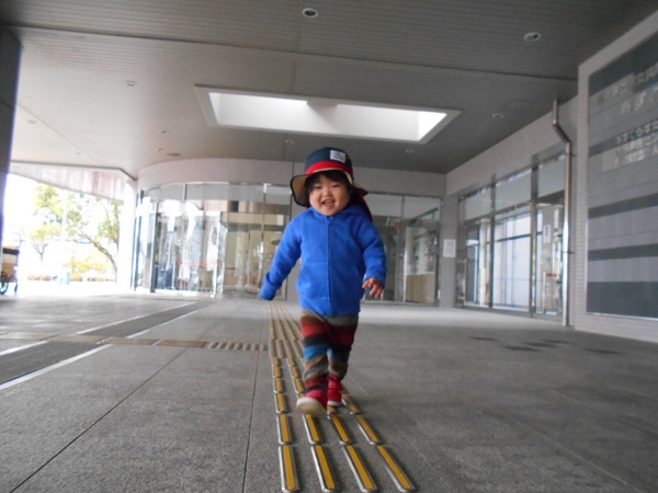 一本橋のように点字ブロックの上を走るお友だちがいましたよ♪
