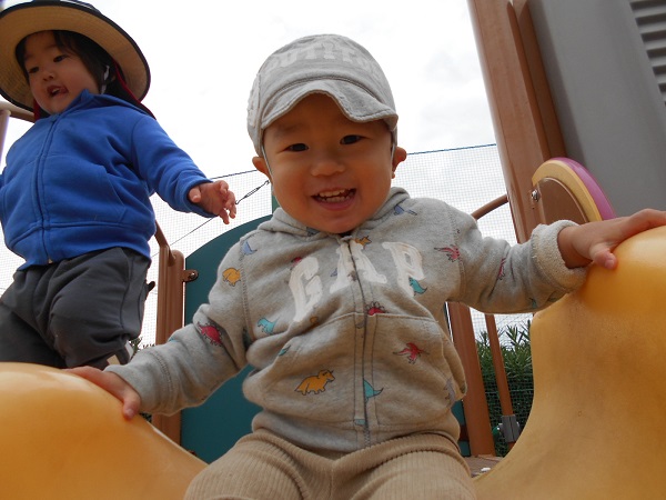 宮崎公園に到着すると、やはり滑り台が大人気✨