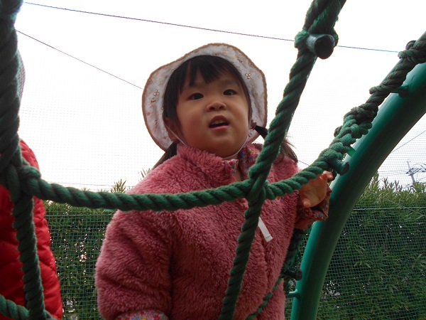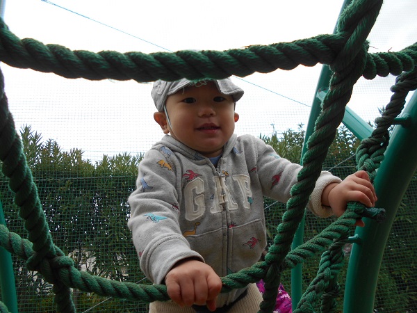 落ちないようにしっかり網を持ち、足をかけて上手に登っていました。
