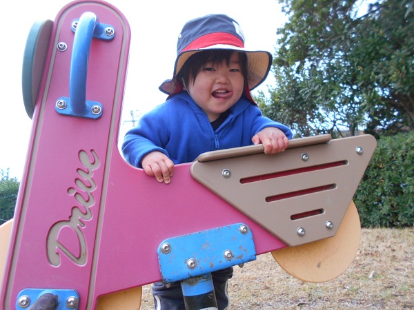 乗り物に自分で乗ろうと「う~ん■」と言いながら1人で一生懸命頑張っていましたよ。