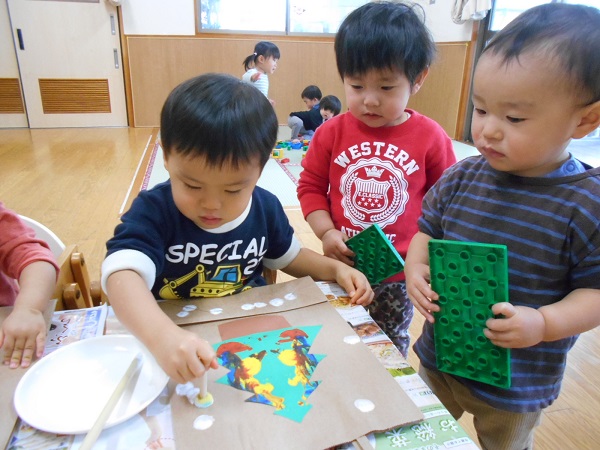 「僕の番来ないかな~?」「はやくやりたいな~」とお友だちが製作をしている様子を伺う子がいましたよ(笑)
