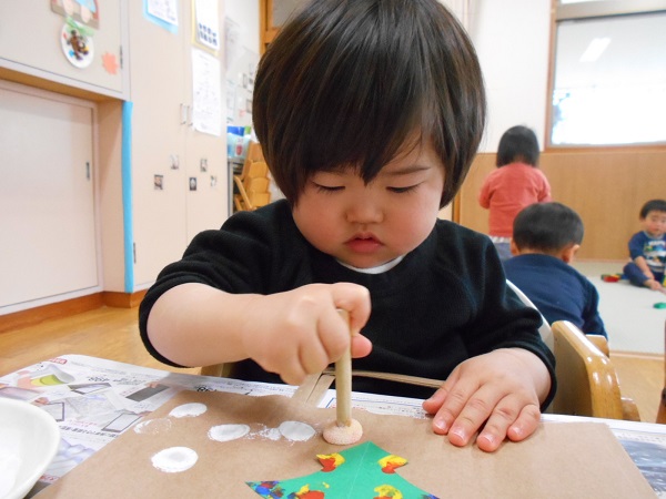 タンポが楽しくて何度も何度もしているうちに、クリスマスツリーの周りに大雪が積もってしまう作品もありました。。。■