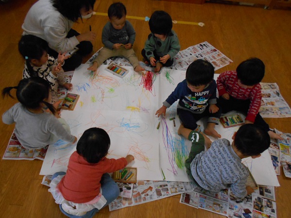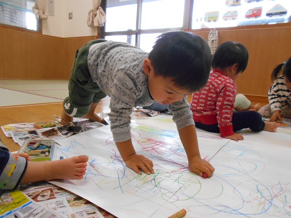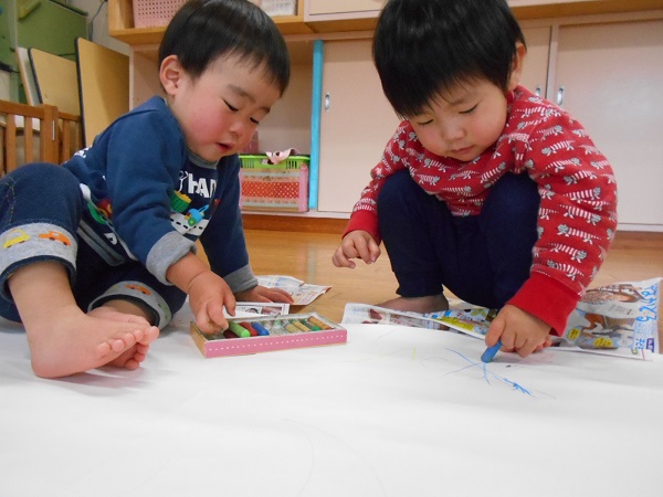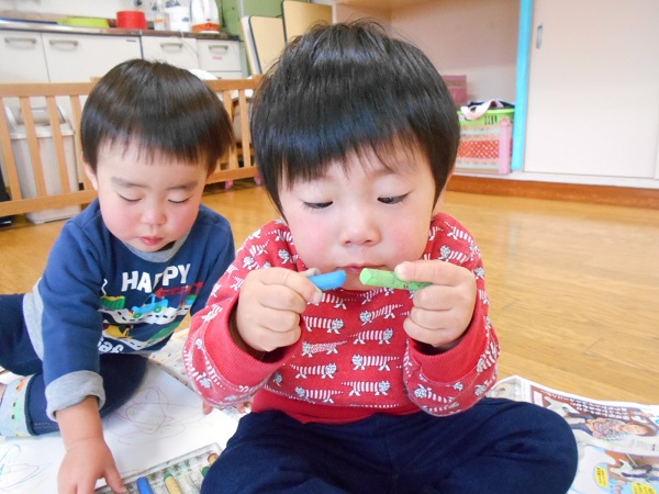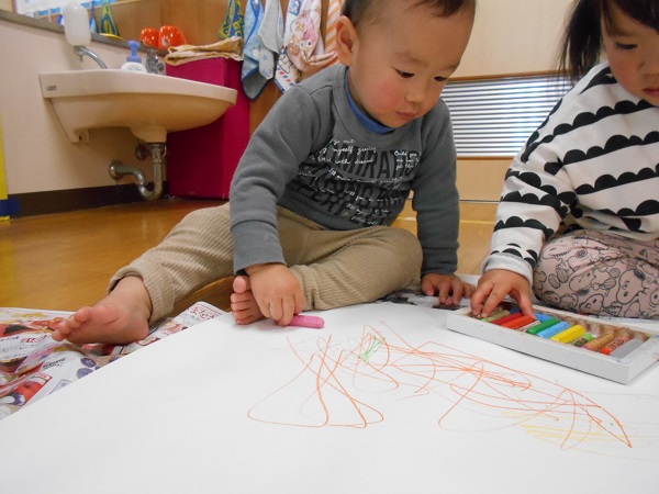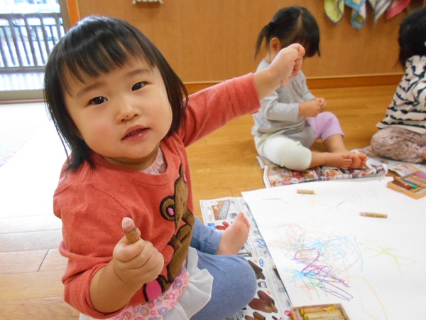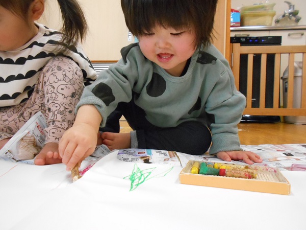手についたクレヨンを観察するお友だちもいましたよ♪