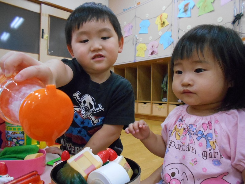 水遊びができなかったお友だちは、お部屋でおままごとをして遊びました。