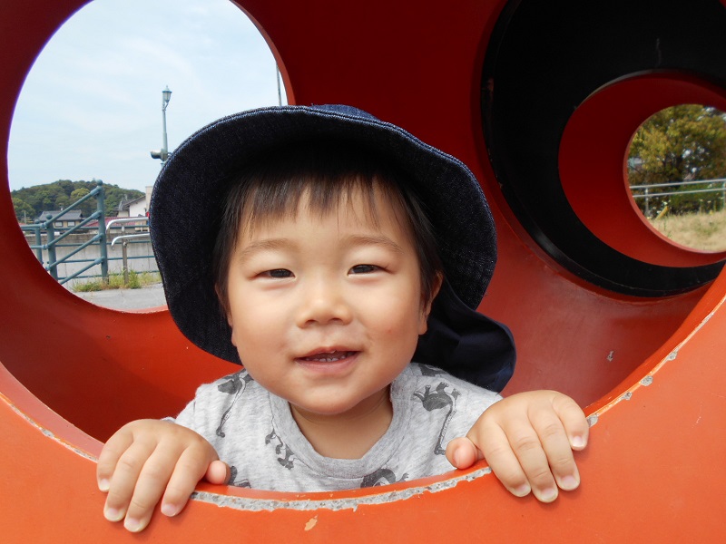 こちらでは遊具の中に入って、保育者に「ばあ♡☺」と素敵な笑顔を見せてくれましたよ✨